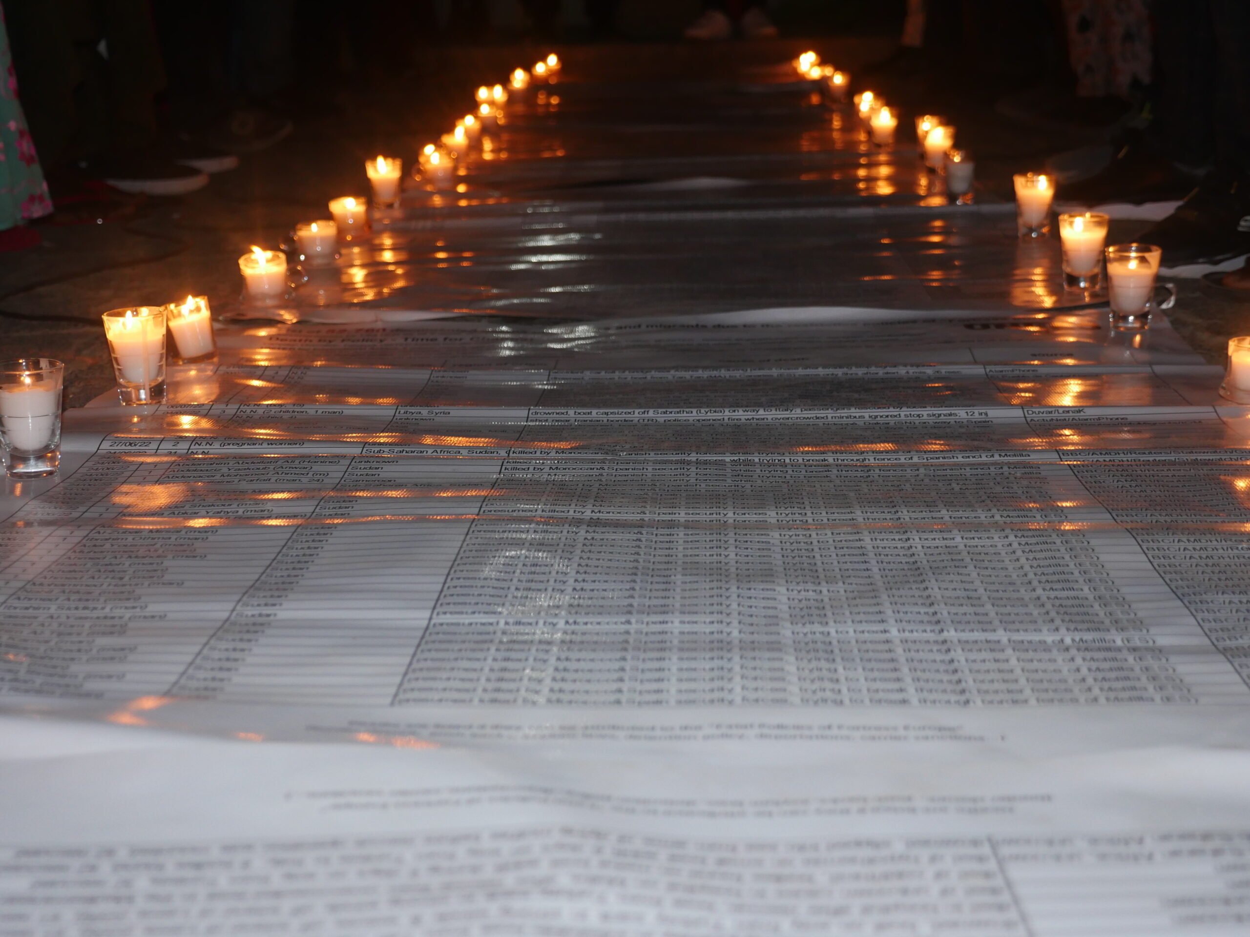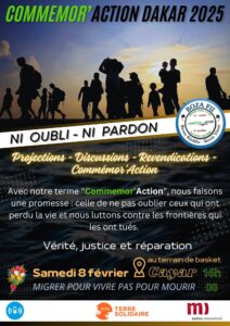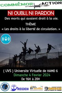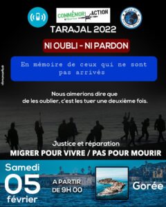 Dans l’après-midi du même jour, nous a créé une espace de Commémor’Action qui s’est tenue par une séance de prières à la mémoire de toutes les victimes des frontières. C’était aussi une manière de les rendre hommage, car avec notre terme « Commemor’Action« , nous faisons une promesse : celle de ne pas oublier ceux qui ont perdu la vie et nous luttons contre les frontières qui les ont tués. Nous offrons un espace de commémoration et nous construirons collectivement quelque chose à partir de notre chagrin et que nous tenons à dire que les oublier c’est de les tuer pour une deuxième fois.