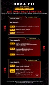 Au cours de ces 72h, un programme bien défini a été mis en place par l’association Boza fii, dans le cadre de sa lutte contre Frontex. Ce programme a débuté le jeudi 10 août par une conférence de presse à laquelle la presse nationale et internationale ainsi que beaucoup d’organisations œuvrant pour le respect des droits humains ont été conviés.