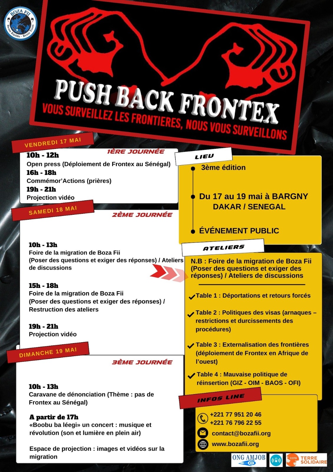 Boza fii était à sa deuxième édition de ses 72h Push Back Frontex. Un évènement qui s’était déroulé du 10 au 12 aout dans la commune de Dalifort Foirail (Dakar) sous le thème de : Laisser les personnes mourir ou les tuer ne doit pas être un moyen de dissuasion.