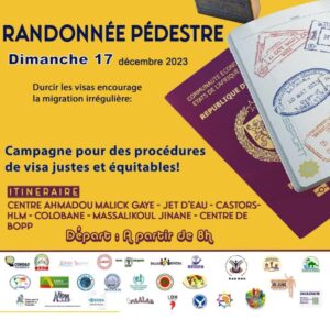 Comme mentionné dans le programme du Samedi 12 aout, troisième et dernier jour d’activité, une randonnée pédestre sous le thème de : Oui à la liberté de circulation s’est effectuée sur les ruelles de la commune de Dalifort Foirail. Nous avons marchés dans les quartiers aves des micros baladeurs et des hauts parleurs pour expliquer à la population que la mobilité est un droit pour tout le monde. Mais aussi de les faire comprendre : qui est Frontex ? Comment l’agence fait-elle son travail ? Quelles sont les conséquences de sa présence au Sénégal ?